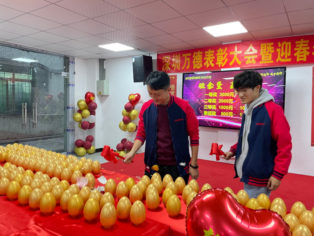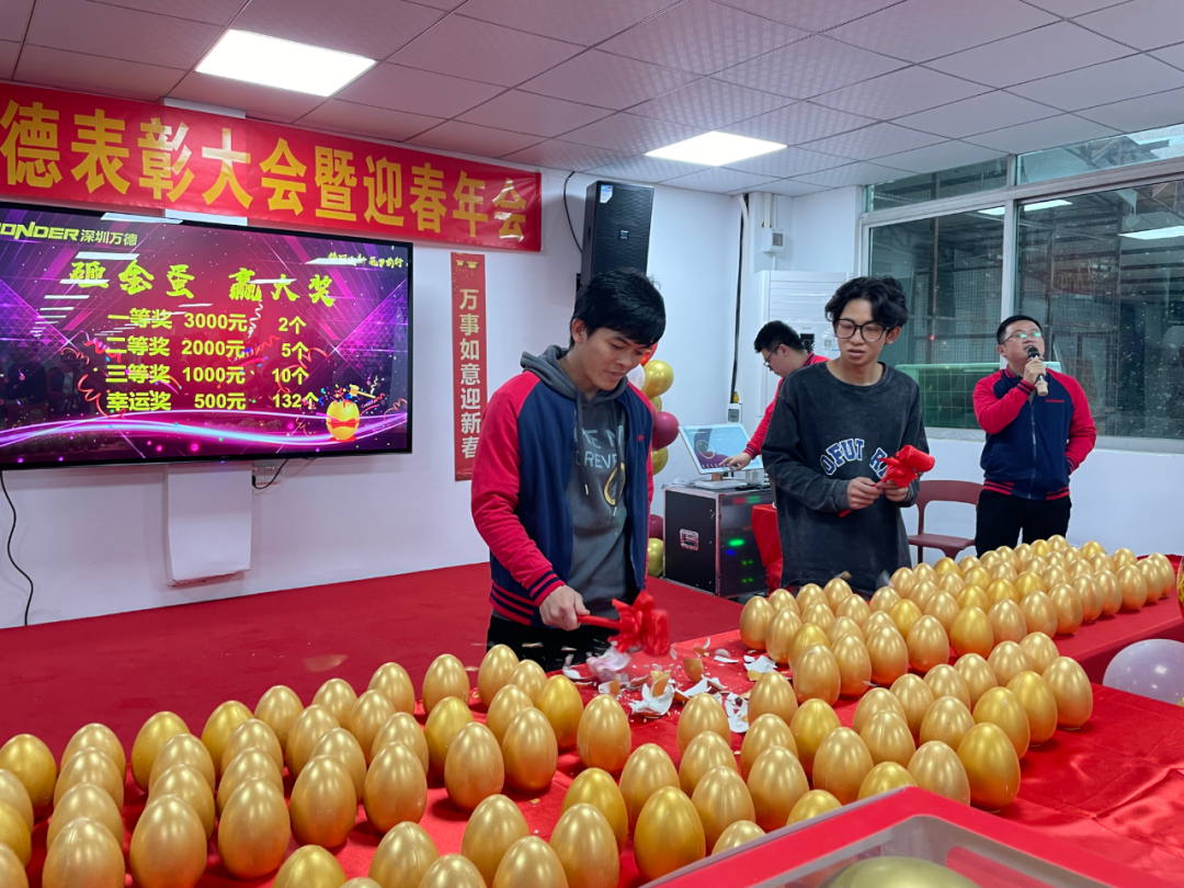 有別于以往的抽獎形式,公司今年特地準備了精彩的砸金蛋環節,直接現金大獎給到大家!現場氣氛熱烈,員工和家屬們喜笑顏開。