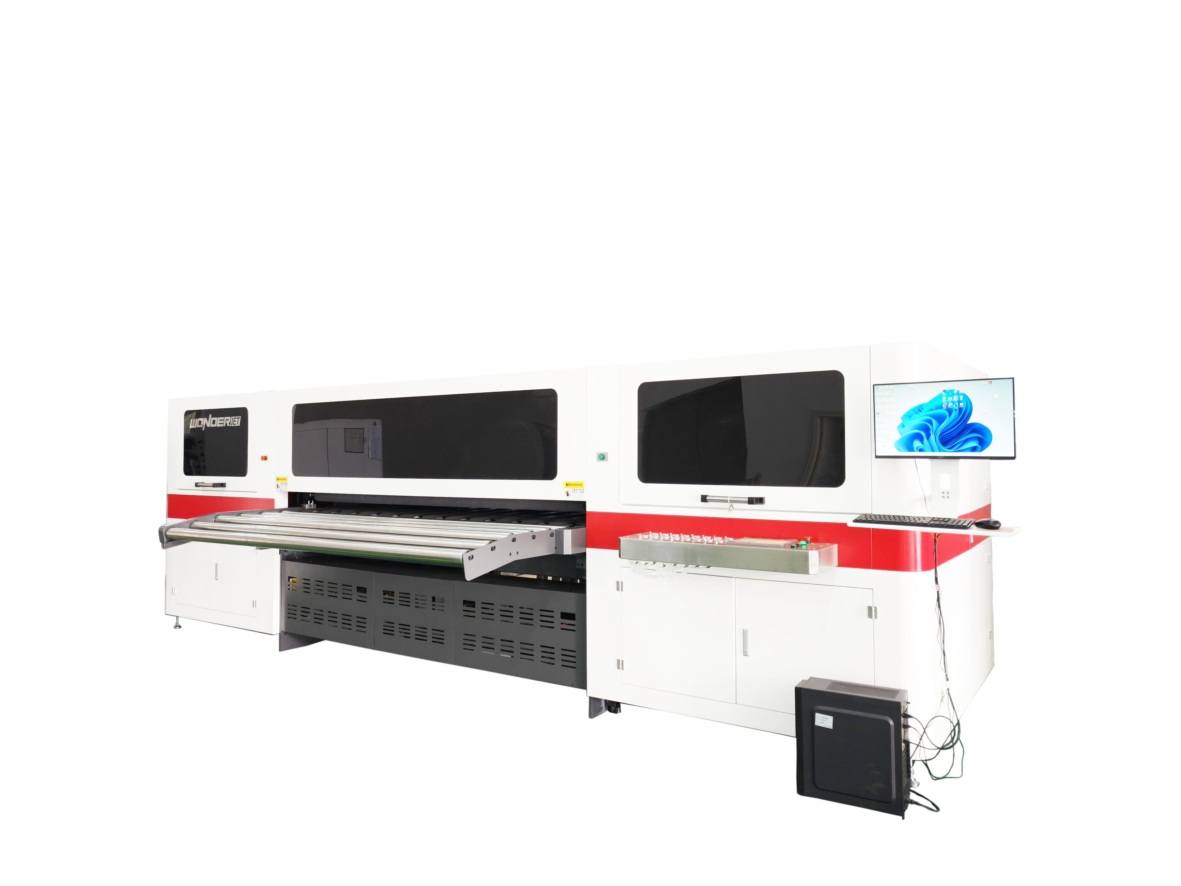 WDUV250-12A掃描式專色UV數碼印刷機,采用重型設備機架,數碼噴墨印刷技術,UV固化墨水印刷,色彩鮮艷且防水,采用CMYK+W顏色模式,印刷寬度最大可達2500mm,長度不限,300*600dpi時,印刷速度最高可達260㎡/h,每小時產能在1~260張左右,非常適合對印刷效果要求精美的中小批量訂單。